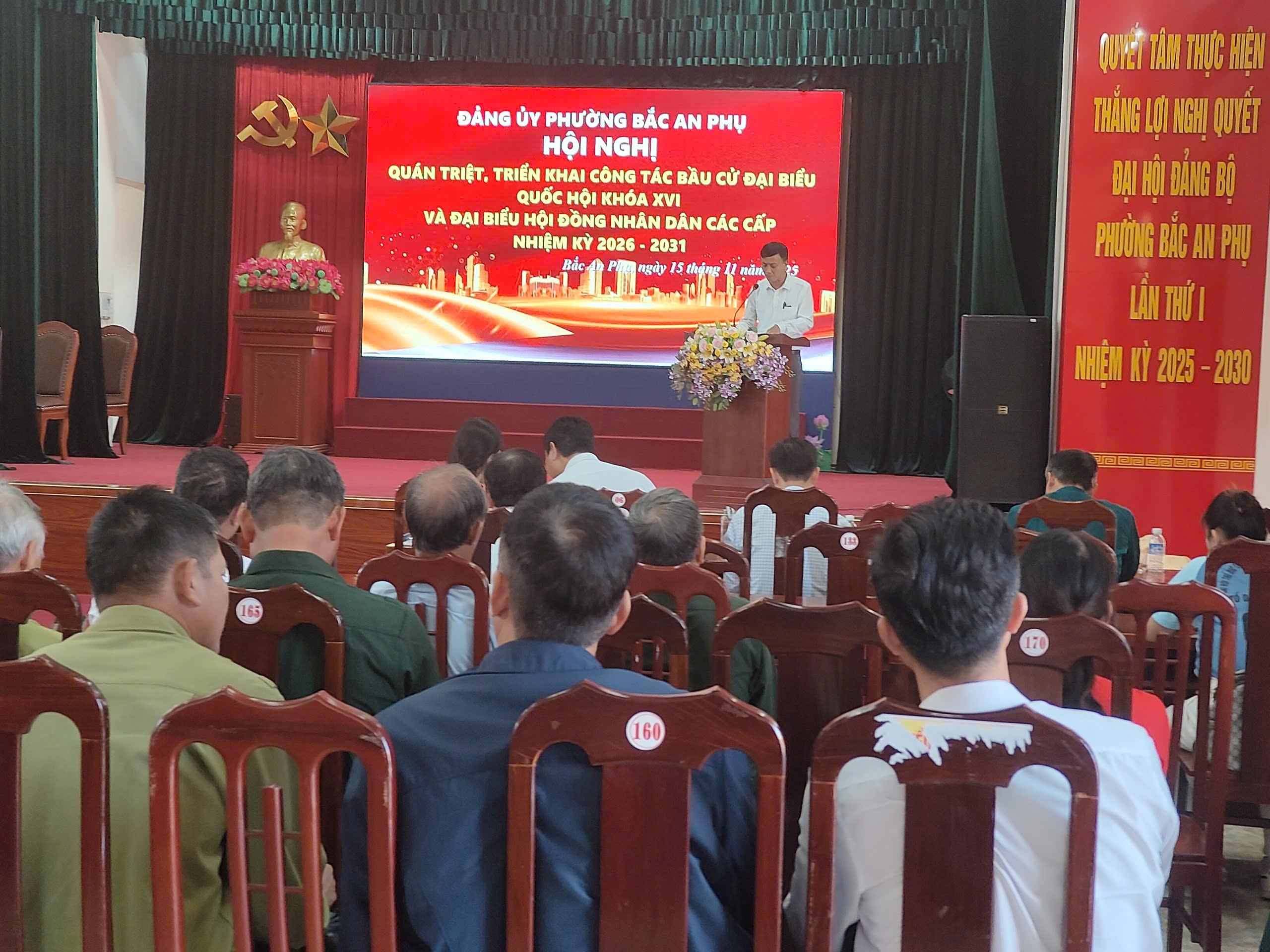 Sáng ngày 15/11, phường Bắc An Phụ tham dự Hội nghị trực tuyến toàn quốc quán triệt Chỉ thị của Bộ Chính trị và triển khai công tác bầu cử đại biểu Quốc hội khóa XVI, đại biểu HĐND các cấp nhiệm kỳ 2026 – 2031. Hội nghị được kết nối từ điểm cầu Trung ương đến các tỉnh, thành phố và cơ sở xã, phường.