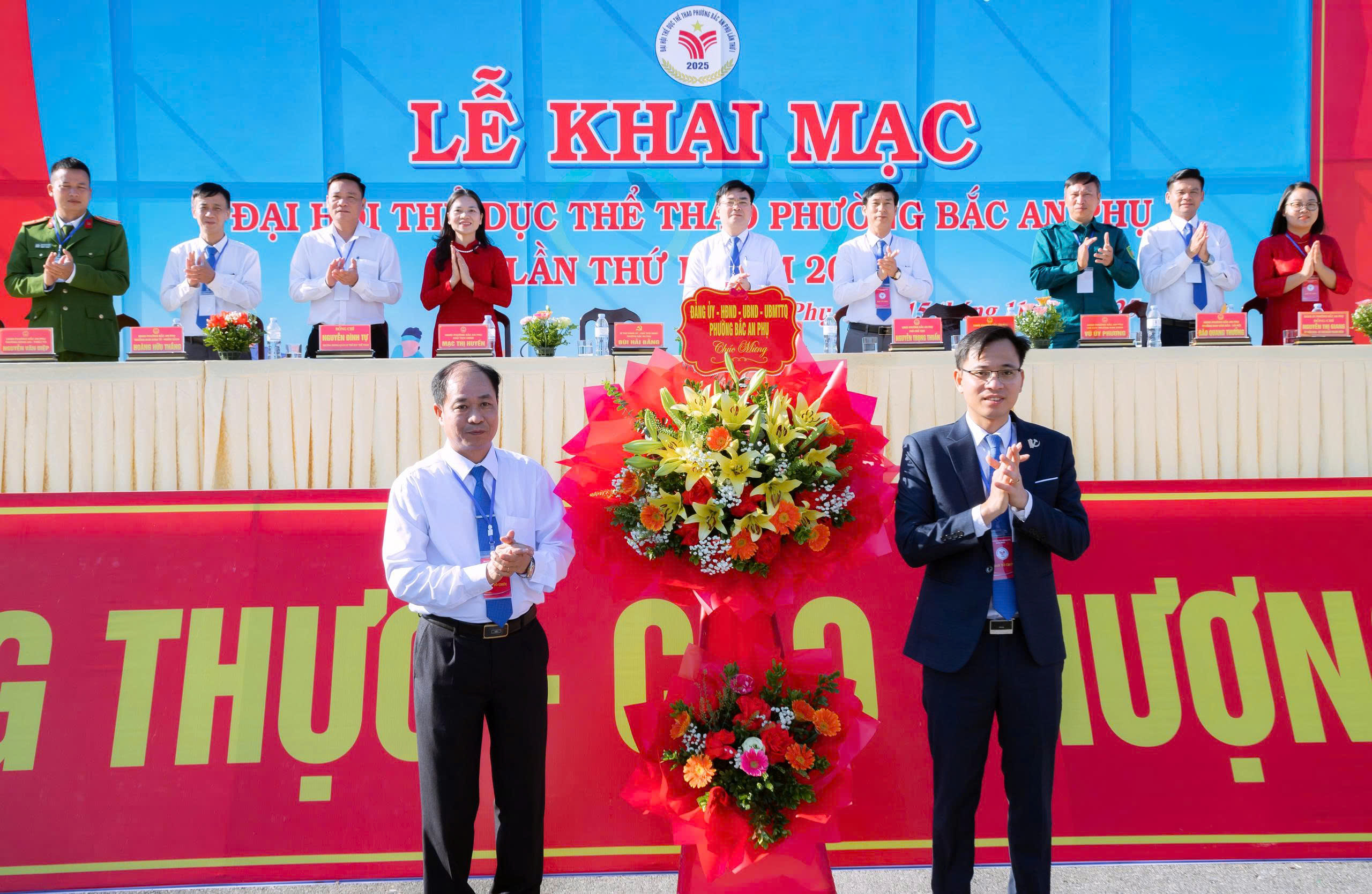 Sáng ngày 15/11, Tại Sân vận động Trung tâm phường, UBND phường Bắc An Phụ long trọng tổ chức Lễ khai mạc Đại hội Thể dục thể thao (TDTT) phường Bắc An Phụ lần thứ I, năm 2025. Về dự chúc mừng Đại hội có đồng chí Nguyễn Đình Tự, Trưởng phòng Quản lý Thể dục thể thao, Sở Văn hoá, thể thao và du lịch thành phố; đồng chí Bùi Hải Bằng, Bí thư Đảng uỷ, chủ tịch HĐND phường; đồng chí Trần Văn Pha, Phó Bí thư Thường trực Đảng uỷ; đồng chí Mạc Thị Huyền, Phó bí thư Đảng uỷ, chủ tịch UBND phường; các đồng chí trong Ban thường vụ Đảng uỷ, thường trực HĐND, lãnh đạo UBND phường, Uỷ ban MTTQ Việt Nam phường; trưởng các phòng, ban, đơn vị của phường; Bí thư Chi bộ, Trưởng các tổ dân phố và gần 600 người đến từ các khối nghi thức, khối vận động viên, khối trọng tài và các khối đại diện cho các tầng lớp Nhân dân trên địa bàn phường.