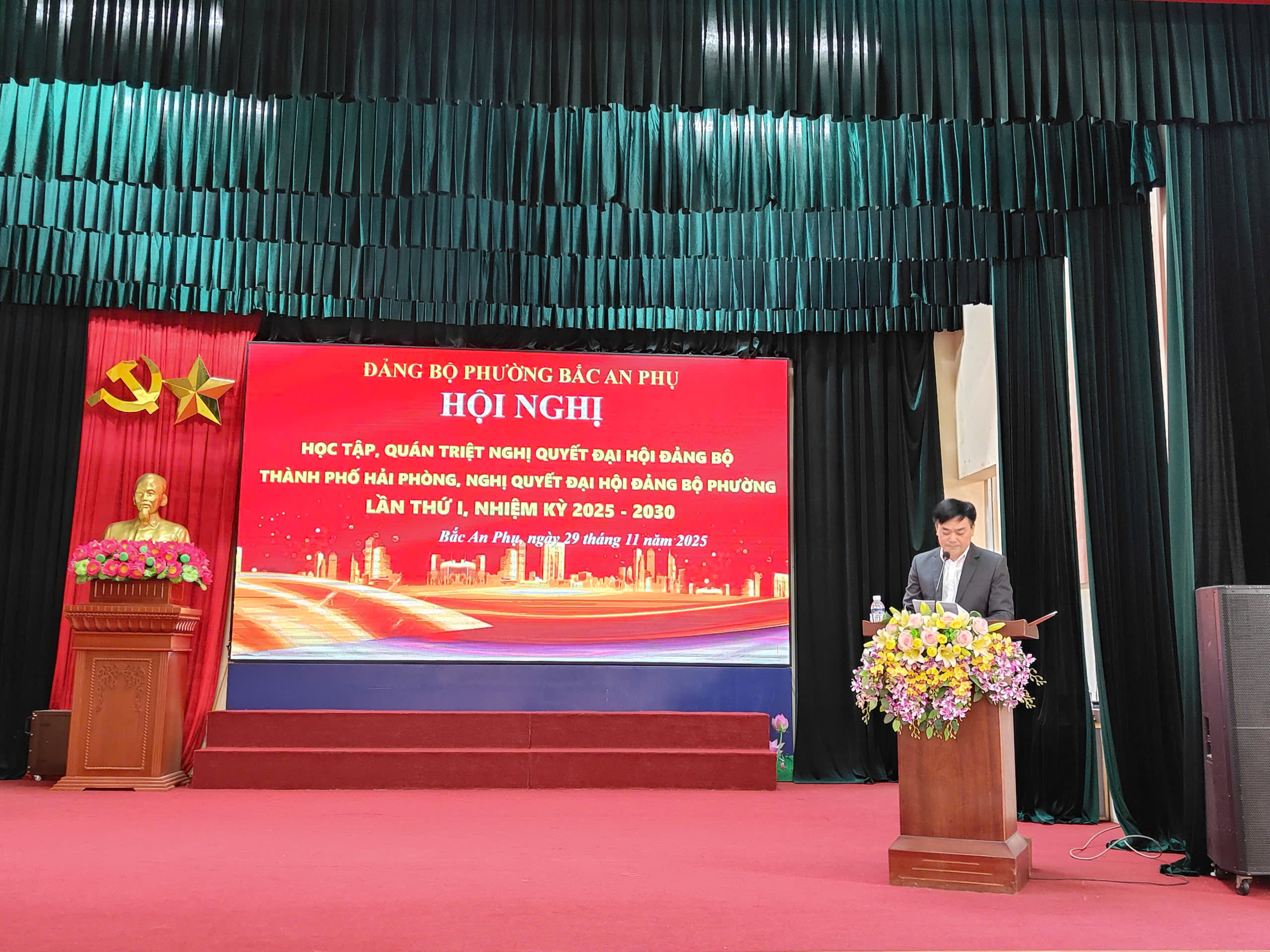 Trong 02 ngày 28-29/11/2025, Đảng uỷ phường Bắc An Phụ tổ chức Hội nghị học tập, quán triệt Nghị quyết Đại hội Đảng bộ thành phố và Nghị quyết Đại hội Đảng bộ phường lần thứ I, nhiệm kỳ 2025-2030 cho toàn thể đảng viên của 28 chi bộ Đảng bộ trực thuộc. Hội nghị được tổ chức tại 3 địa điểm: Nhà văn hoá Trung tâm phường; Nhà văn hoá xã Lê Ninh cũ và Nhà văn hoá Thất Hùng cũ. Dự chỉ đạo hội nghị có đồng Mạc Thị Huyền, Phó Bí thư Đảng uỷ, Chủ tịch UBND phường. Đồng chí Trần Văn Pha, Phó Bí thư thường trực Đảng uỷ; đồng chí Hoàng Hữu Thắng, Trưởng Ban xây dựng Đảng; đồng chí Đào Quang Thưởng, Chủ nhiệm Uỷ ban kiểm tra Đảng uỷ trực tiếp truyền đạt nội dung các Nghị quyết.