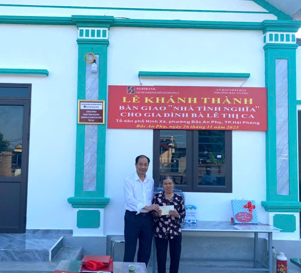 Chiều ngày 26/11, UBND phường Bắc An Phụ, Ngân hàng Nông nghiệp và phát triển nông thôn Agribank chi nhánh Kinh Môn, Hải Dương II tổ chức khánh thành và bàn giao nhà ở tặng bà Lê Thị Ca, tổ dân phố Ninh Xá. Về dự có đồng chí Trần Văn Mạnh, Phó chủ tịch UBND phường; lãnh đạo Ngân hàng Agribank chi nhánh Kinh Môn, Hải Dương II, các cơ quan, đơn vị, đoàn thể của phường và Tổ dân phố Ninh Xá.