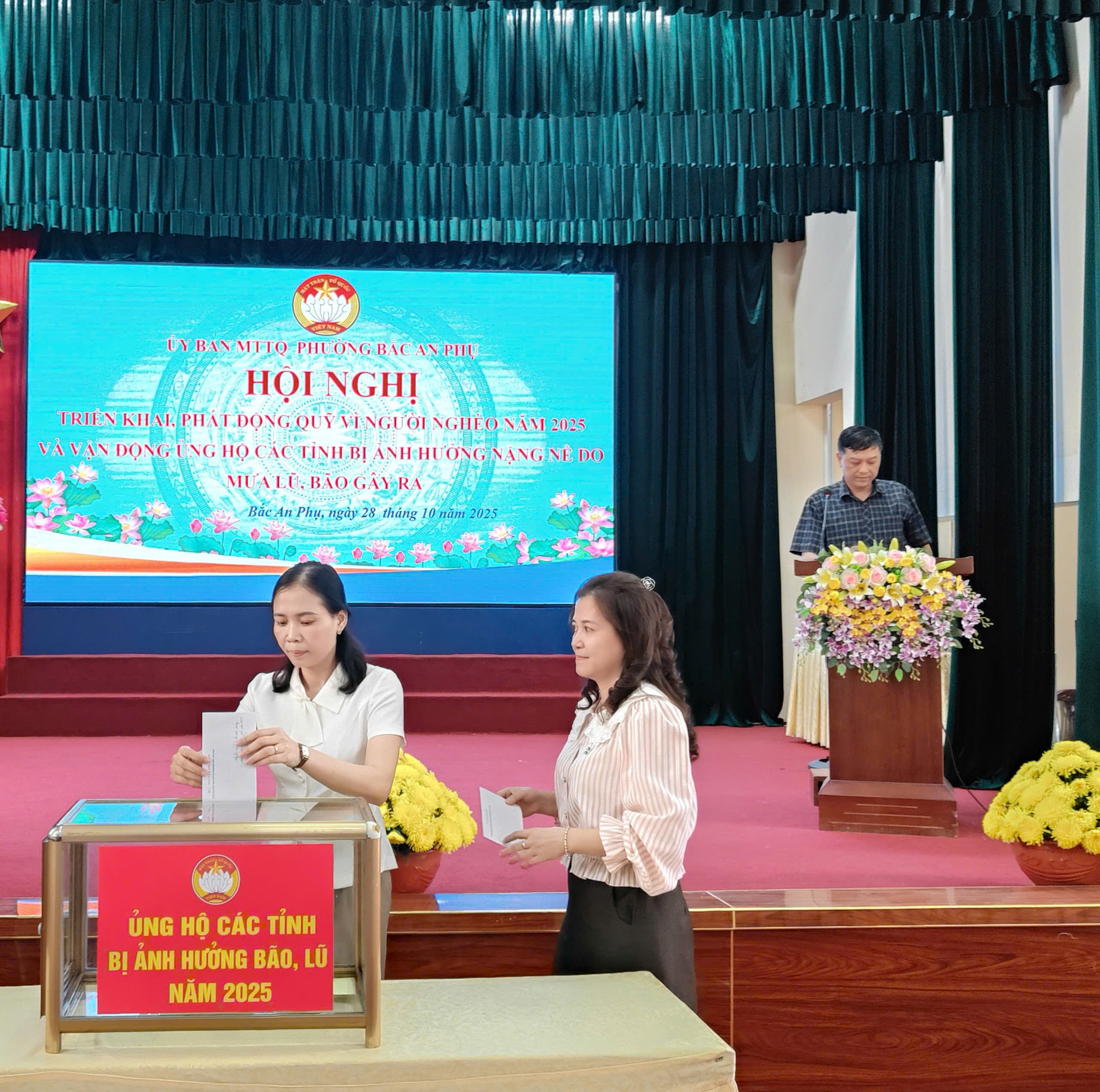 Với truyền thống tốt đẹp, nhân ái nghĩa tình của dân tộc Việt Nam, đồng chí Nguyễn Thị Thảo, Chủ tịch Uỷ ban MTTQ Việt Nam phường Bắc An Phụ kêu gọi cán bộ, đảng viên và nhân dân toàn phường chung sức, chung lòng, tiếp tục thực hiện cuộc vận động xây dựng Quỹ "Vì người nghèo" và ủng hộ giúp đỡ nhân dân bị ảnh hưởng do thiên tai gây ra.